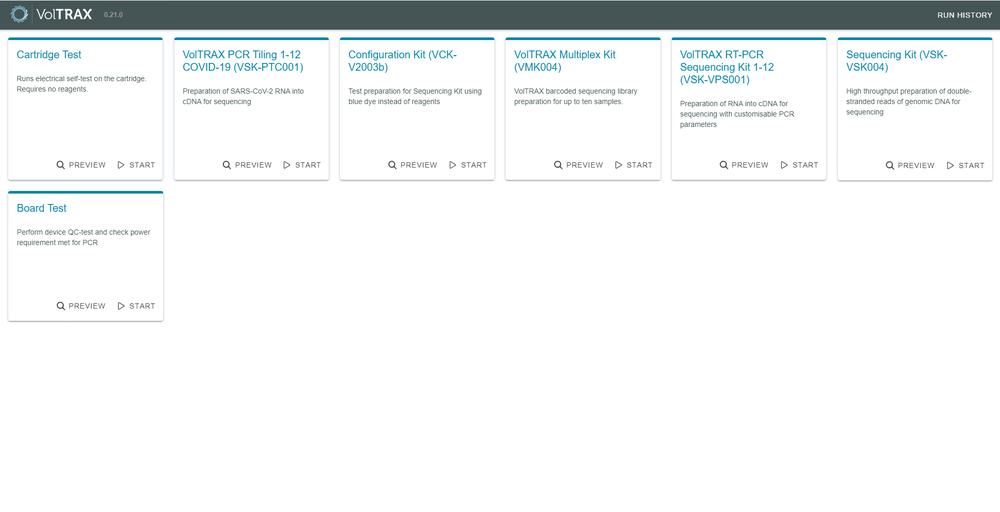 - Use the protocol selector in the UI to load the VolTRAX RT-PCR Sequencing Kit 1-12 protocol.