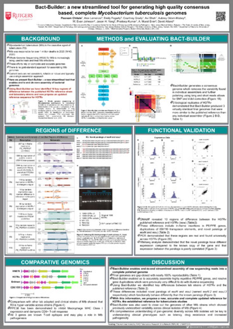 Mycobacterium tuberculosis (Mtb) is the causative agent of tuberculosis (TB). Mtb was responsible for over 1 million deaths in 2020 (WHO, 2020). Whole Genome Sequencing (WGS) for Mtb is increasingly being used to track and treat Mtb infections. These efforts rely on complete and accurate genomes. There is no gold-standard approach for assembling Mtb genomes. Current tools are not consistent, reliable or robust and typically use a single assembler approach. Here we present Bact-Builder – a new streamlined tool that enables end to end de novo assembly of bacterial genomes. Using Bact-Builder we have identified 10 key regions of difference between the published H37Rv reference strain and laboratory strains and now propose an updated reference sequence for H37Rv