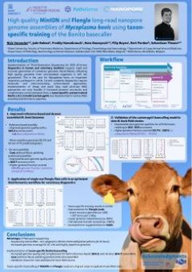 Implementation of Third-Generation Sequencing for WGS all-in-one diagnostics in human and veterinary medicine requires rapid and accurate generation of consensus genomes. Nevertheless, obtaining high quality genomes from non-standard organisms is still not guaranteed. This is the case for Mycoplasma bovis, an important respiratory pathogen in cattle. Current complete diagnostics require molecular and time-consuming culture-based approaches. Implementation of cheap and quick long read all-in-one WGS approaches are only feasible if increased genome accuracies and completeness can be obtained. Here, a taxon-specific custom-trained Bonito v.0.1.3 model (custom-pg45) was implemented in various WGS assembly bioinformatics pipelines.