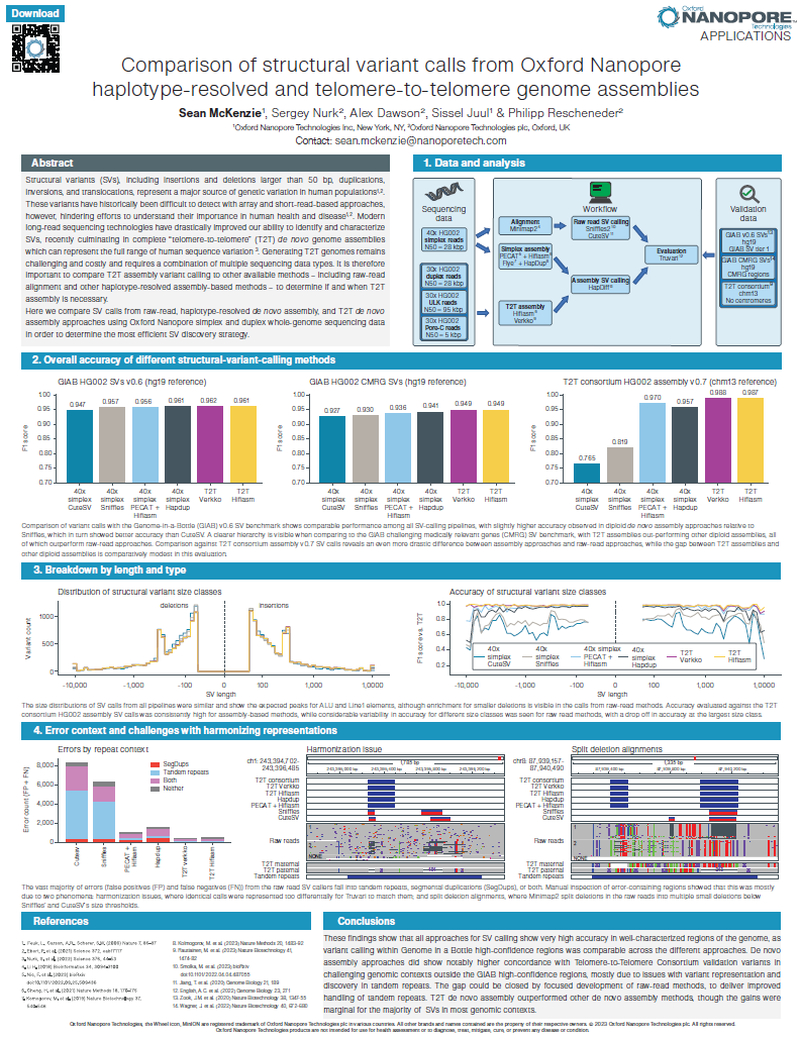 Here we compare SV calls from raw-read, haplotype-resolved de novo assembly, and T2T de novo assembly approaches using Oxford Nanopore simplex and duplex whole-genome sequencing data in order to determine the most efficient SV discovery strategy.
