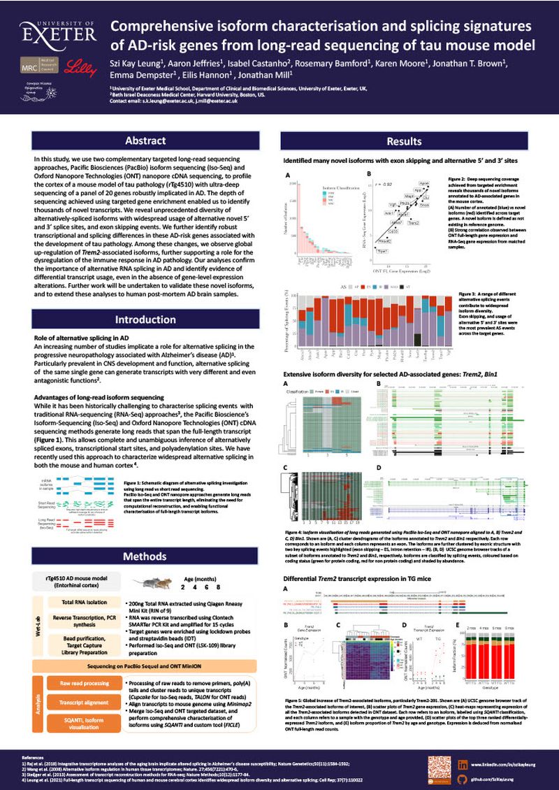 In this study, we used two complementary targeted long-read sequencing approaches, Pacific Biosciences (PacBio) isoform sequencing (Iso-Seq) and Oxford Nanopore Technologies (ONT) nanopore cDNA sequencing, to profile the cortex of a mouse model of tau pathology (rTg4510) with ultra-deep sequencing of a panel of 20 genes robustly implicated in AD.