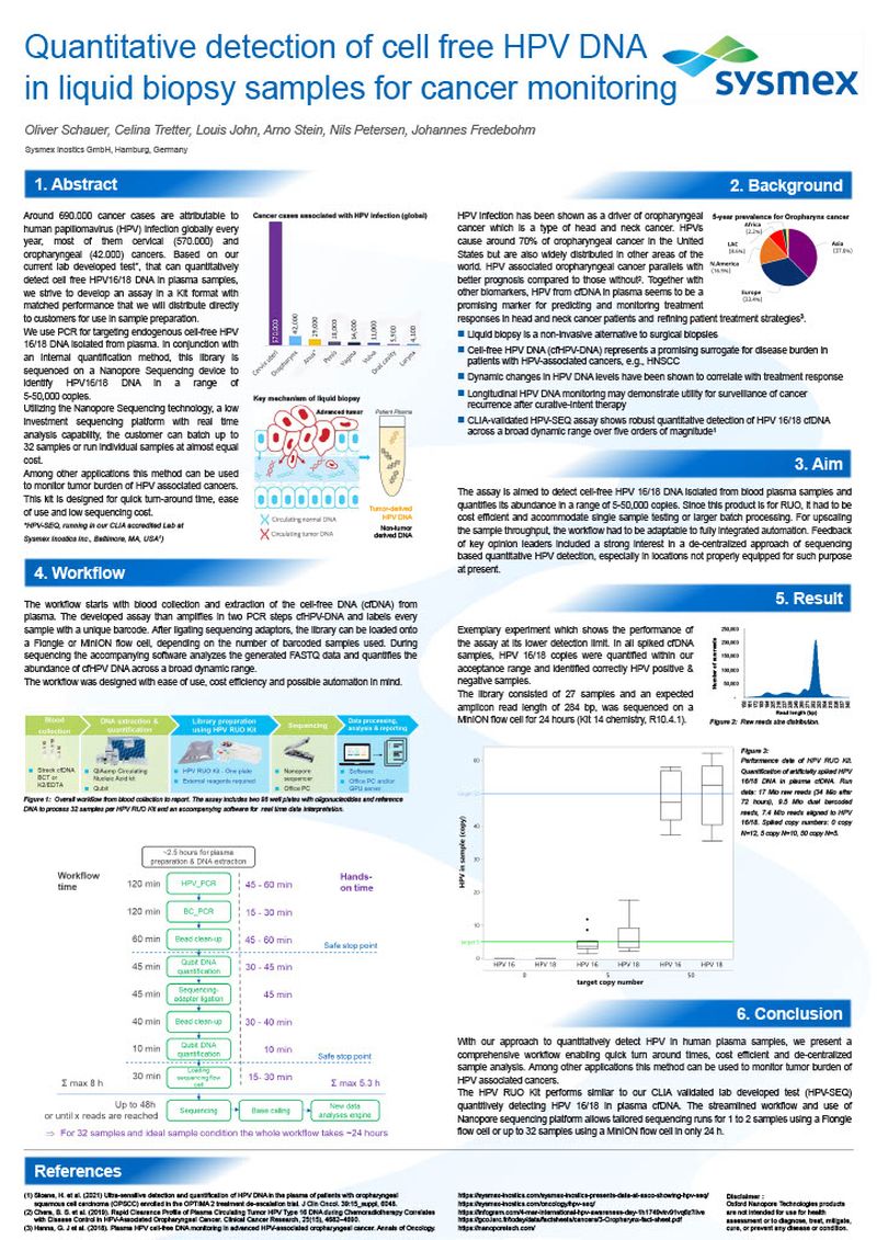 Around 690,000 cancer cases are attributable to human papillomavirus (HPV) infection globally every year, most of them cervical (570,000) and oropharyngeal (42,000) cancers. Based on our current lab developed test*, that can quantitatively detect cell free HPV16/18 DNA in plasma samples, we strive to develop an assay in Kit format with matched performance that we will distribute directly to customers for use in sample preparation.
