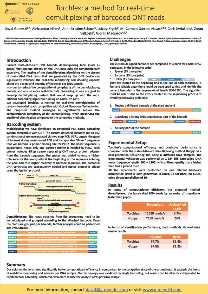 Current state-of-the-art Oxford Nanopore barcode demultiplexing tools (such as guppy) that operate directly on the DNA base-calls are computationally expensive. The lagging of the demultiplexing algorithms on the stream of base-called DNA reads that are generated by the ONT device can significantly influence the real-time monitoring and deciding capacity about the quality and quantity of the reads per DNA sample. In order to reduce the computational complexity of the demultiplexing process and ensure more real-time data processing, it was our goal to develop demultiplexing system that would keep up with the most efficient basecalling algorithm running on GridION’s GPU. We developed Torchlex, a method for real-time demultiplexing of custom barcoded reads compatible with Oxford Nanopore Technologies. The proposed method managed to significantly reduce the computational complexity of the demultiplexing, while preserving the quality of classification compared to the competing methods.