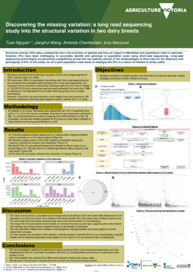 Structural variants (SVs) play a substantial role in the evolution of species and have an impact on Mendelian and quantitative traits in mammals. However, SVs have been challenging to accurately identify and genotype at population scale using short-read sequencing. Long-read sequencing technologies are becoming competitively priced and can address several of the disadvantages of short-read for the discovery and genotyping of SVs. In this study, we ran a pilot population scale study to catalogue the SVs in a cohort of Holstein & Jersey cattle.