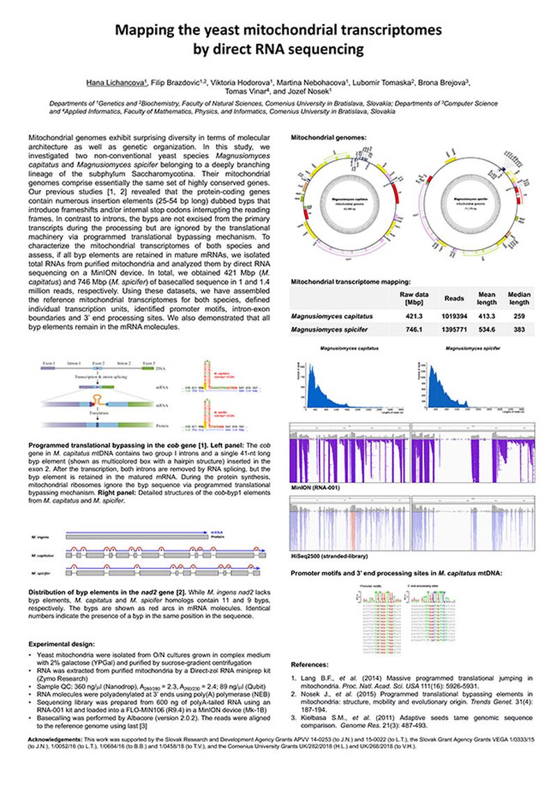 Mitochondrial genomes exhibit surprising diversity in terms of molecular architecture as well as genetic organization. In this study, we investigated two non-conventional yeast species Magnusiomyces capitatus and Magnusiomyces spicifer belonging to a deeply branching lineage of the subphylum Saccharomycotina. Their mitochondrial genomes comprise essentially the same set of highly conserved genes. Our previous studies [1, 2] revealed that the protein-coding genes contain numerous insertion elements (25-54 bp long) dubbed byps that introduce frameshifts and/or internal stop codons interrupting the reading frames. In contrast to introns, the byps are not excised from the primary transcripts during the processing but are ignored by the translational machinery via programmed translational bypassing mechanism. To characterize the mitochondrial transcriptomes of both species and assess, if all byp elements are retained in mature mRNAs, we isolated total RNAs from purified mitochondria and analyzed them by direct RNA sequencing on a MinION device. In total, we obtained 421 Mbp (M. capitatus) and 746 Mbp (M. spicifer) of basecalled sequence in 1 and 1.4 million reads, respectively. Using these datasets, we have assembled the reference mitochondrial transcriptomes for both species, defined individual transcription units, identified promoter motifs, intron-exon boundaries and 3’ end processing sites. We also demonstrated that all byp elements remain in the mRNA molecules.