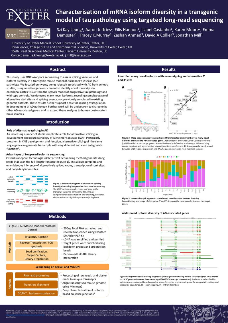 NCM 2022: Characterisation of mRNA isoform diversity in a transgenic model of tau pathology using targeted long-read sequencing