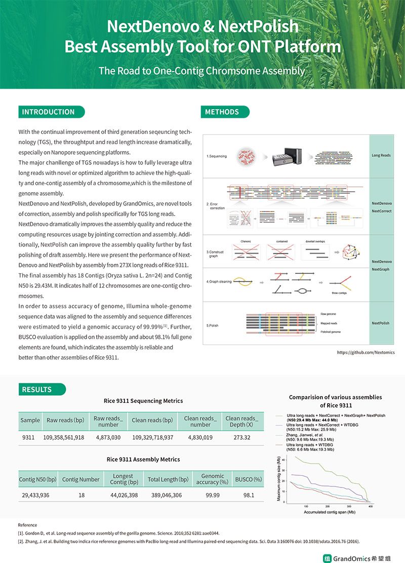 With the continual improvement of third generation seqeuncing technology (TGS), the throughtput and read length increase dramatically, especially on Nanopore sequencing platforms. The major chanllenge of TGS nowadays is how to fully leverage ultra long reads with novel or optimized algorithm to achieve the high-quality and one-contig assembly of a chromosome,which is the milestone of genome assembly.