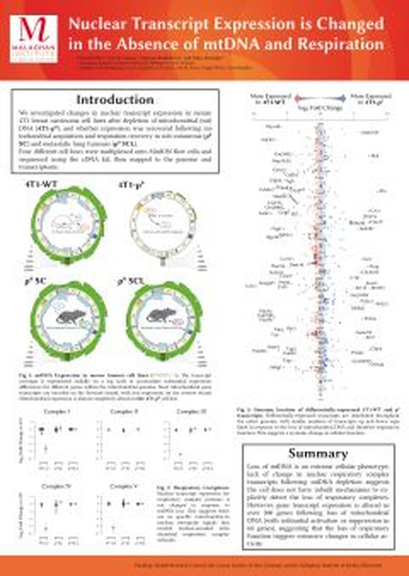 We investigated changes in nuclear transcript expression in mouse 4T1 breast carcinoma cell lines aer depletion of mitochondrial (mt) DNA (4T1-ρ 0 ), and whether expression was recovered following mi‐ tochondrial acquisition and respiration recovery in sub-cutaneous (ρ 0 SC) and metastatic lung tumours (ρ 0 SCL). Four different cell lines were multiplexed onto MinION flow cells and sequenced using the cDNA kit, then mapped to the genome and transcriptome