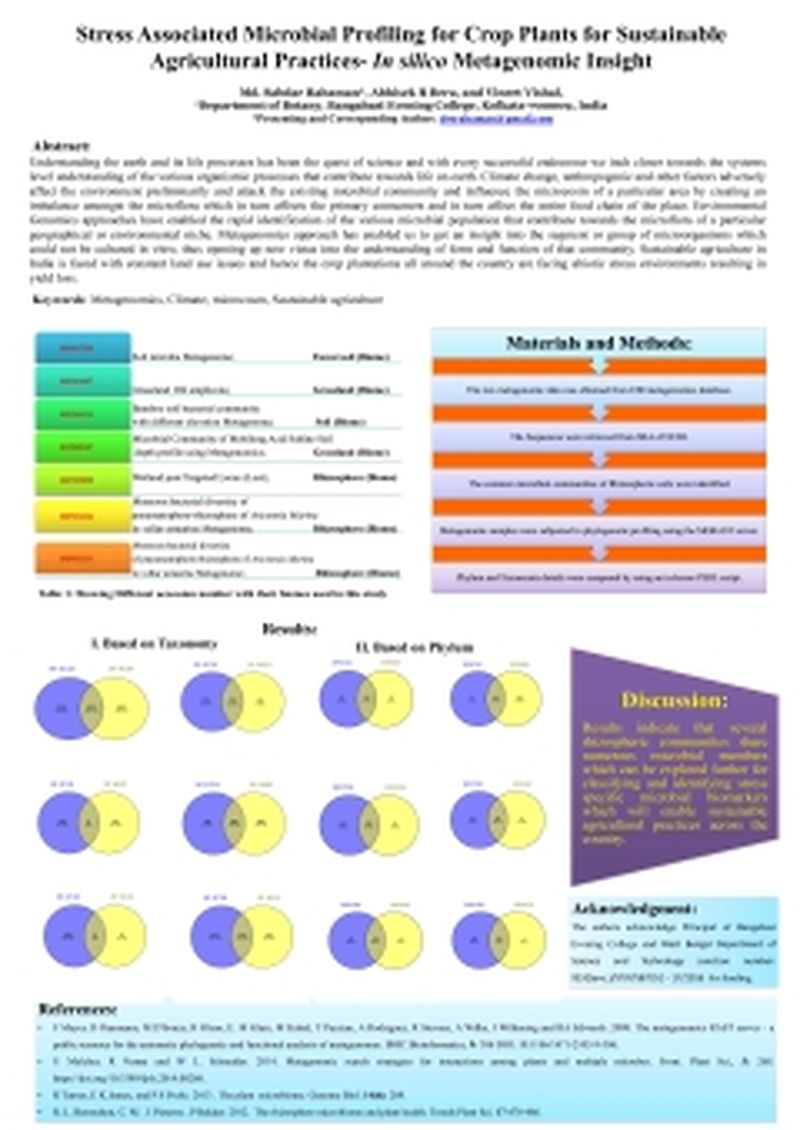 Understanding the earth and its life processes has been the quest of science and with every successful endeavour we inch closer towards the systems level understanding of the various organismic processes that contribute towards life on earth. Climate change, anthropogenic and other factors adversely affect the environment preliminarily and attack the existing microbial community and influence the microcosm of a particular area by creating an imbalance amongst the microflora which in turn affects the primary consumers and in turn affect the entire food chain of the place. Environmental Genomics approaches have enabled the rapid identification of the various microbial population that contribute towards the microflora of a particular geographical or environmental niche. Metagenomics approach has enabled us to get an insight into the segment or group of microorganisms which could not be cultured in vitro, thus opening up new vistas into the understanding of form and function of that community. Sustainable agriculture in India is faced with constant land use issues and hence the crop plantations all around the country are facing abiotic stress environments resulting in yield loss.